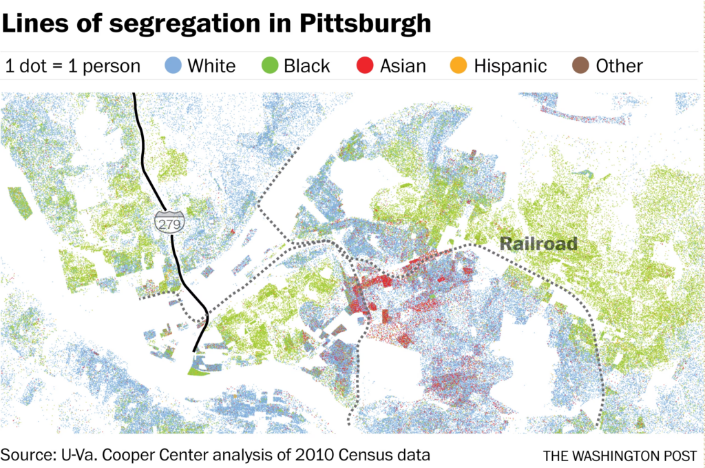 I dag har de mörkhyade bättre rättigheter. Men spåren av rasismen syns än i dag i många amerikanska städer. Institutet Othering and belonging institute har gjort en lista över USA:s mest segregerade städer. Där ingår folkrika städer som Miami (plats 7), New York (plats 9), Atlanta (plats 11), Oakland (förort till San Francisco, plats 14) och Los Angeles (plats 25). Listan uppdaterades förra året och innehåller endast städer där det bor fler än 200 000 invånare.